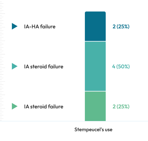 Based on US Physician and Payer feedback, 40% of IA steroids/ HA injection failure patients will likely use Stempeucel